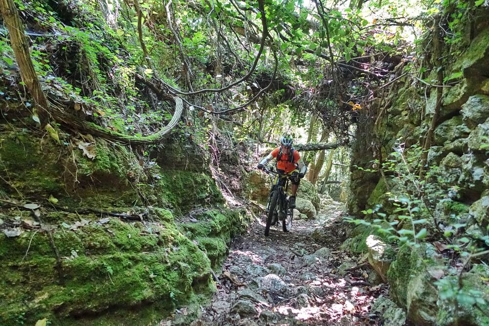 - leichte Abfahrt auf Schotterpiste und Trail über Verzi und Calvisio nach Finale Ligure (diese Abfahrt kann auch als Auffahrt zu Le Manie genutzt werden)