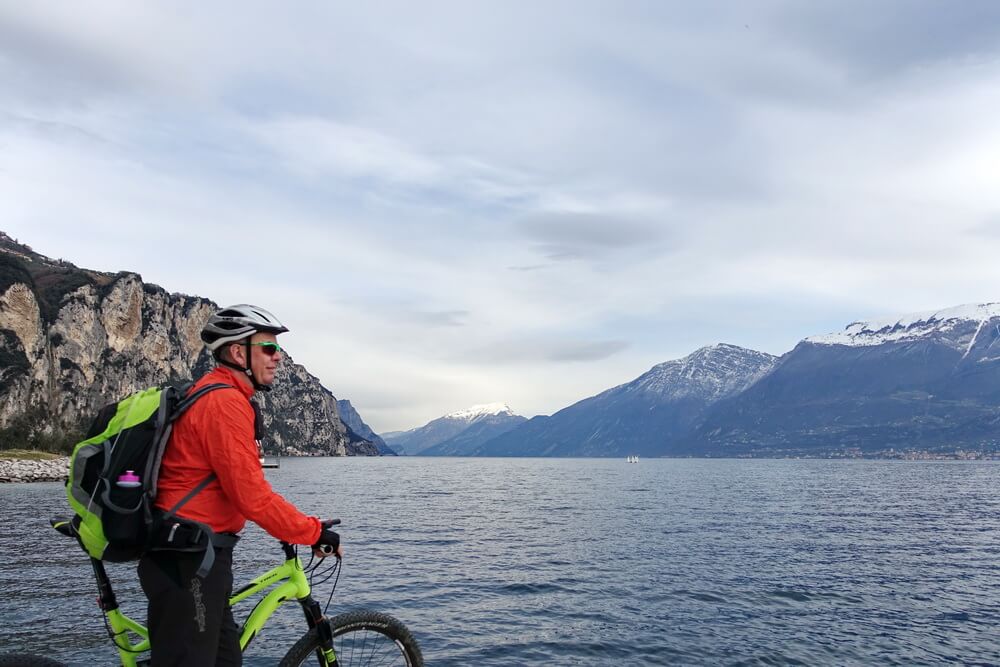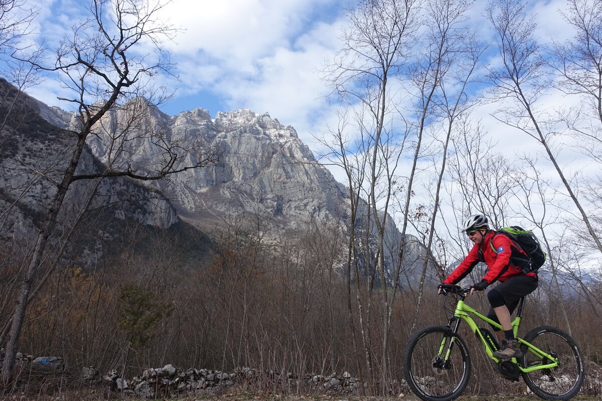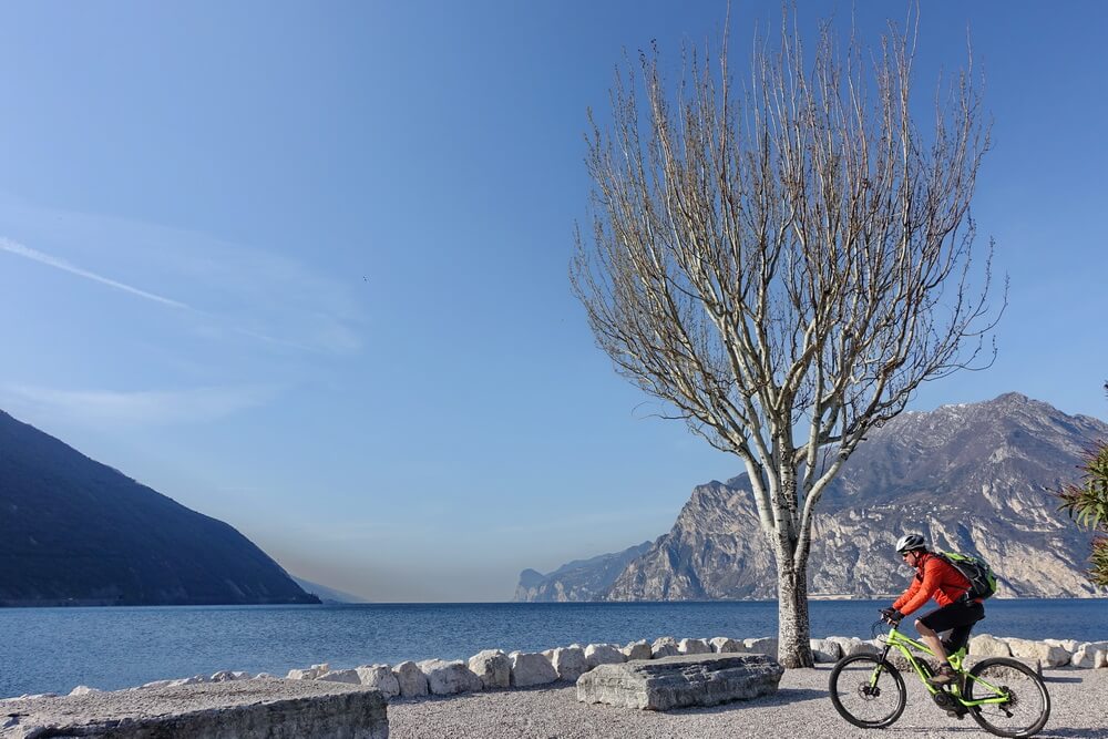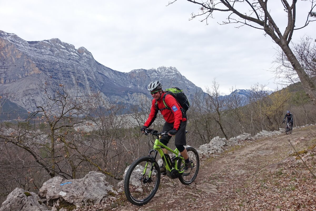 Mit den technischen Möglichkeiten der modernen eMountainbikes eröffnen sich ganz neue Perspektiven für die Gestaltung von Touren. Mit ein wenig Übertreibung könnte man sagen, die Tourenbücher müssen für diese Zielgruppe komplett neu geschrieben werden. Gemeinsam mit meinem langjährigen Tourbegleiter Dirk habe ich das ausgiebig getestet. Gleichzeitig haben wir das mit einem zeitigen Start in die Bikesaison verbunden. Dazu bietet zum Beispiel das AktivHotel Santa Lucia in Torbole am nördlichen Ufer des Gardasee ein attraktives Umfeld. Schon im Februar öffnet das ganz auf eine sportive Zielgruppe ausgerichtete Hotel seine Pforten. Oft gibt es dann schon sonnige Tage, an denen man sich gern aufs Rad schwingt. Auf jeden Fall ist es etwas ganz anderes, den Gardasee ohne Trubel zu erleben. Ideal für den Start in die Saison zum Beispiel mit einem ersten Trainingslager oder einfach nur, um ein paar schöne Touren zu fahren. Einige Anregungen sind hier aufgeführt. Die Touren haben Dirk und ich konsequent auf das Befahren mit einem sportlichen eMTB ausgerichtet. Dadurch sind interessante Wegführungen entstanden, die wir teilweise in dieser Form bisher nicht gefahren sind. Oder wir sind an Orte gekommen, wo wir bisher keinen Gedanken darauf verschwendet haben, jemals dorthin zu gelangen. Die Ergebnisse sind aus unserer Sicht sensationell. Lasst euch inspirieren.