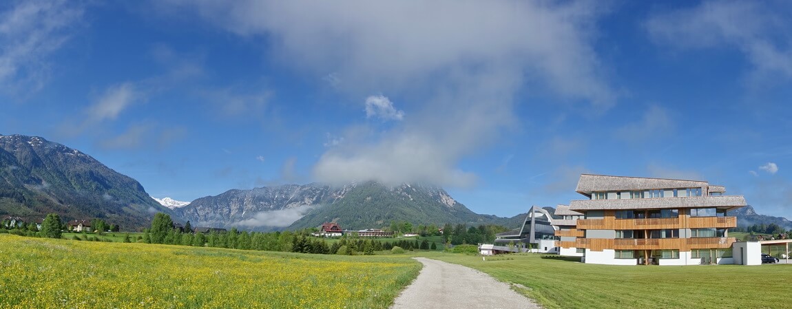 So auch im Salzkammergut in der Dachsteinregion. Ich lernte diese liebenswerte Gegend an der Schnittstelle von Salzburger Land, Oberösterreich und Steiermark während eines eMTB-Camps kennen. Unsere Ausgangsbasis war dabei das attraktive Narzissenhotel in Bad Aussee. Ausgehend von diesem außergewöhnlich perfekt in der Landschaft gelegenen Wellness-Ressort lassen sich eine Reihe von schönen Touren mit dem Mountainbike unternehmen. Eine Vielzahl von guten Schotterpisten lädt ein, die Gegend zu erkunden. Das findet immer in bergigem Gelände statt. Dazu sind moderne eMountainbikes bestens geeignet. Gesagt, getan.