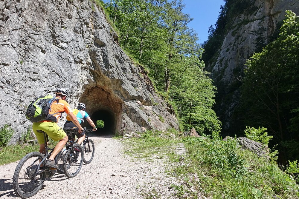 - der Steig durch die Felswand oberhalb von Bad Goisern ist ebenso spektakulär wie gut mit dem eMTB erreich- und fahrbar