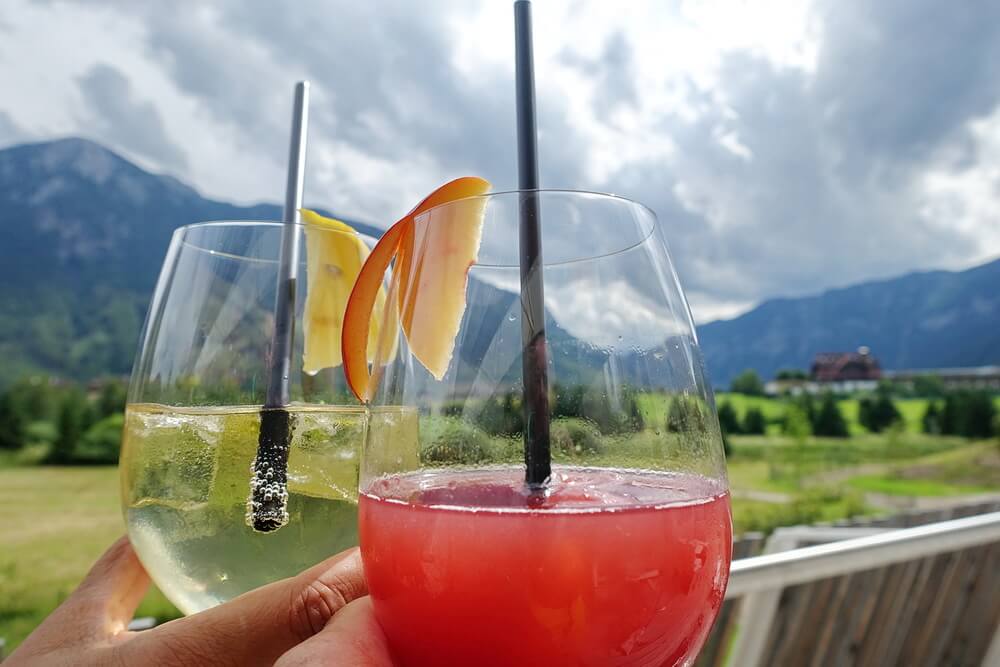Sensationell ist der Ausblick von der Terrasse des Restaurants auf den Dachsteingletscher. Dort kann man nach einem erlebnisreichen Tag mit Blick auf die Berge anstoßen. Danke an das Team im Narzissenhotel - professionell und immer noch persönlich und herzlich.