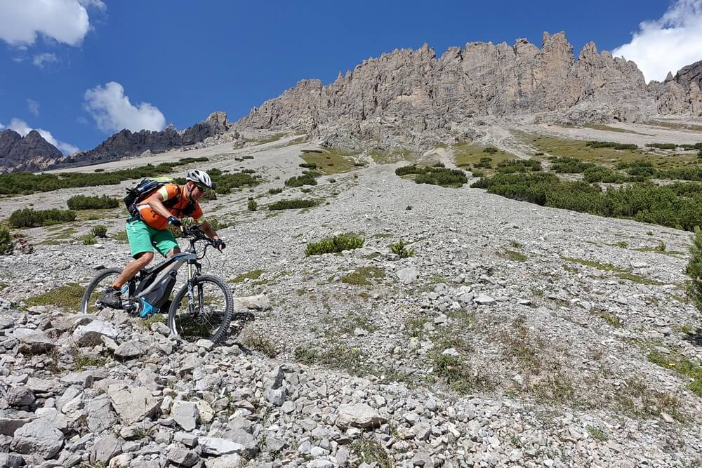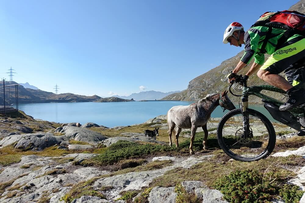 Mit einem eMTB eigentlich eine leichte Geschichte, dachte ich. Wenn der Saft reicht. Ein Kettenriss an der Adda-Quelle raubte uns viel Zeit, die mir dann beim geplanten Nachladen in der Pause am Rifugio Monte Scala fehlen sollte. Die restlichen 100 Höhenmeter bis zur allerletzten Passhöhe am Passo da Val Viola musste ich so aus eigener Kraft treten. Das ist dann sozusagen die Höchststrafe für faule eMountainbiker und eine lehrreiche Erfahrung, wie man eMTB-Touren planen, gestalten und durchführen sollte. Immer nach dem Motto: von Steckdose zu Steckdose über die Berge! Scherz beiseite: wir haben auch sehr viel Zeit mit Foto- und Videoaufnahmen verbracht - so einen tollen Tag muss man dazu einfach nutzen. Auf jeden Fall ist es eine superschöne Rundtour, die man natürlich auch mit einem normalen MTB machen kann, wie es mir Bruno Raselli auch bestätigt hat.