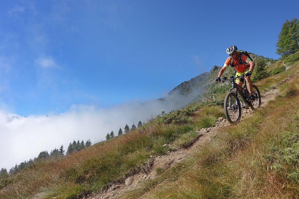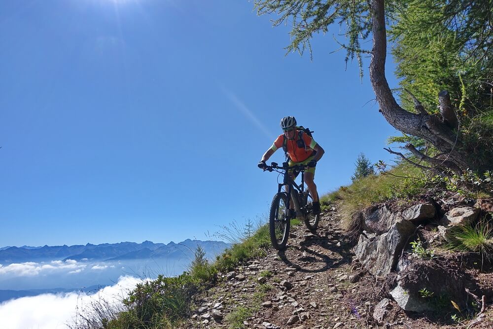- ab Prato Valentino (Skilifte) beginnt die Abfahrt nach Teglio auf einem Mix aus Trails, Karrenwegen und Schotterpisten